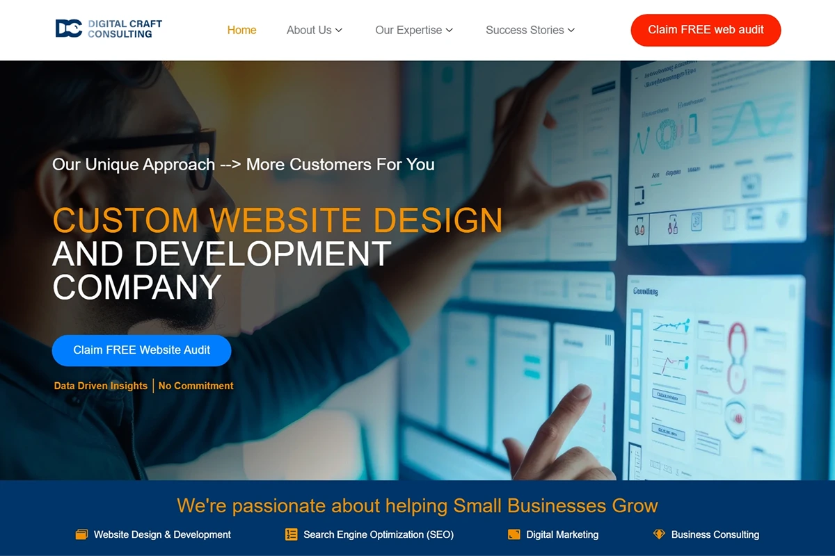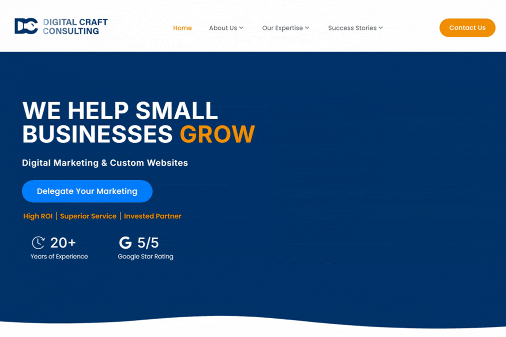 As a web designer at Digital Craft Consulting, having the opportunity to contribute to the company website’s design enhancements has been a rewarding educational experience. In addition to leveraging my background in digital media arts to add engaging video and animations to the homepage, I learned a lot about marketing and SEO by single-handedly building the website’s blog and city-focused service area pages.